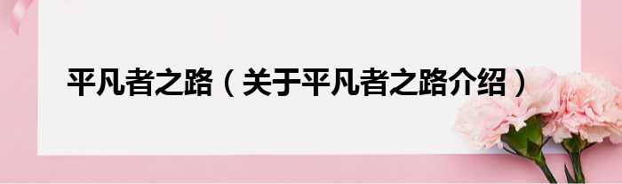 導讀 大家好,笑笑來為大家解答以上的問題。平凡者之路,關于平凡者之路介紹這個很多人還不知道,現在讓我們一起來看看吧!1、 《平凡者之路》