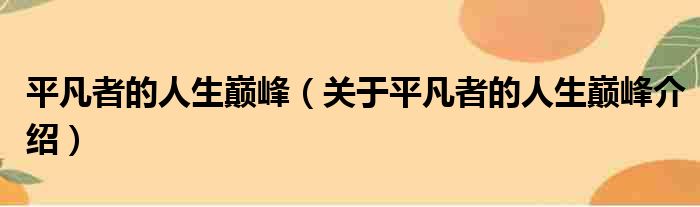 平凡者的人生巔峰(關于平凡者的人生巔峰介紹)