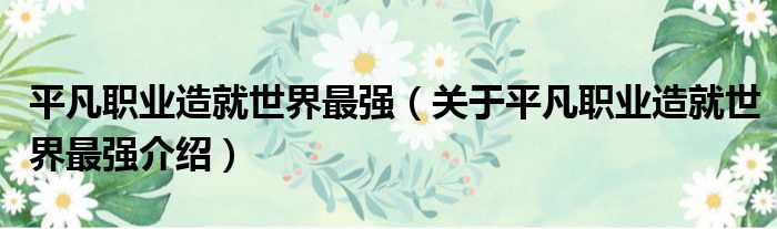 平凡職業造就世界最強(關于平凡職業造就世界最強介紹)