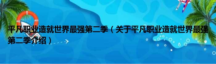 導讀 大家好,笑笑來為大家解答以上的問題。平凡職業造就世界最強第二季,關于平凡職業造就世界最強第二季介紹這個很多人還不知道,現在讓我們一起