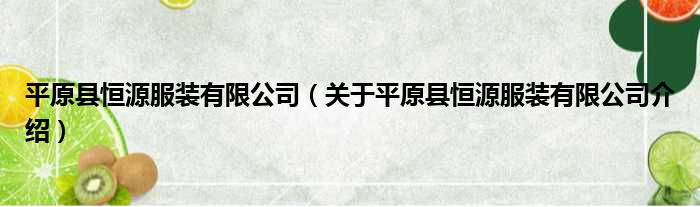 平原縣恒源服裝有限公司(關于平原縣恒源服裝有限公司介紹)