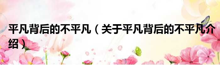 平凡背后的不平凡(關于平凡背后的不平凡介紹)