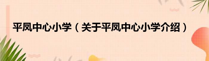 關于平鳳中心小學到此分享完畢,希望能幫助到您。