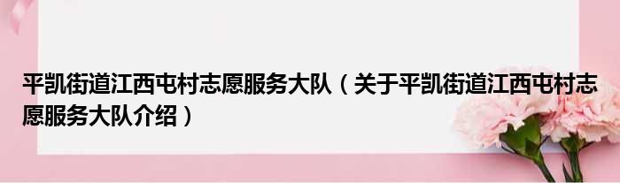 平凱街道江西屯村志愿服務大隊(關于平凱街道江西屯村志愿服務大隊介紹)
