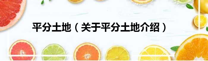 大家好,笑笑來為大家解答以上的問題。平分土地,關于平分土地介紹這個很多人還不知道,現在讓我們一起來看看吧!