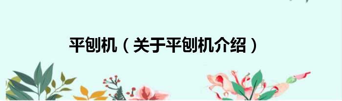 平刨機(關于平刨機介紹)