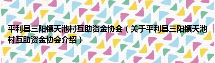 平利縣三陽鎮天池村互助資金協會(關于平利縣三陽鎮天池村互助資金協會介紹)