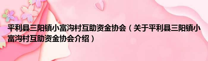 平利縣三陽鎮小富溝村互助資金協會(關于平利縣三陽鎮小富溝村互助資金協會介紹)