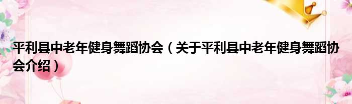 平利縣中老年健身舞蹈協會(關于平利縣中老年健身舞蹈協會介紹)