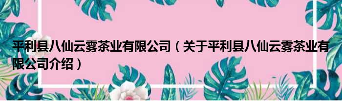 平利縣八仙云霧茶業有限公司(關于平利縣八仙云霧茶業有限公司介紹)