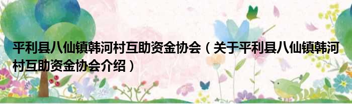 平利縣八仙鎮韓河村互助資金協會(關于平利縣八仙鎮韓河村互助資金協會介紹)