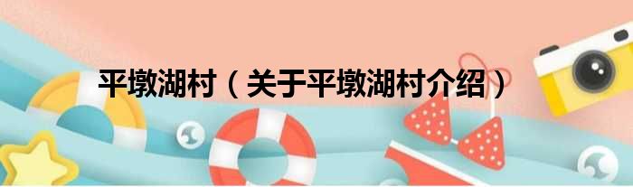 關于平墩湖村到此分享完畢,希望能幫助到您。
