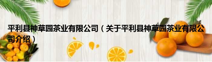 平利縣神草園茶業有限公司(關于平利縣神草園茶業有限公司介紹)
