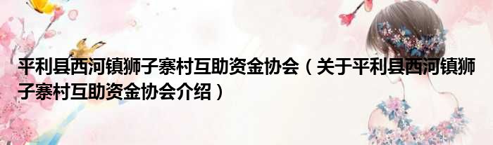 平利縣西河鎮獅子寨村互助資金協會(關于平利縣西河鎮獅子寨村互助資金協會介紹)