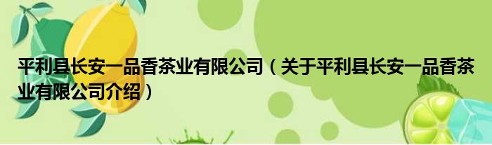 平利縣長安一品香茶業有限公司(關于平利縣長安一品香茶業有限公司介紹)
