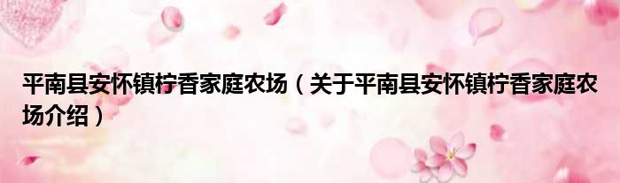平南縣安懷鎮檸香家庭農場(關于平南縣安懷鎮檸香家庭農場介紹)