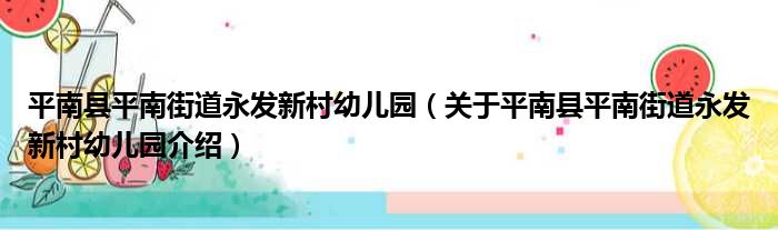 平南縣平南街道永發新村幼兒園(關于平南縣平南街道永發新村幼兒園介紹)