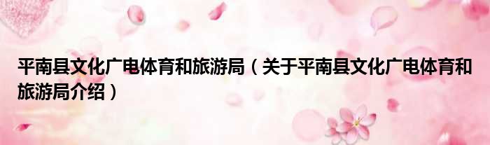 關于平南縣文化廣電體育和旅游局到此分享完畢,希望能幫助到您。