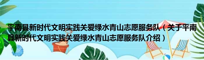 平南縣新時代文明實踐關愛綠水青山志愿服務隊(關于平南縣新時代文明實踐關愛綠水青山志愿服務隊介紹)