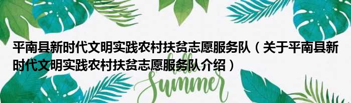 關于平南縣新時代文明實踐農村扶貧志愿服務隊到此分享完畢,希望能幫助到您。