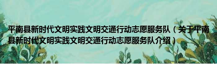 平南縣新時代文明實踐文明交通行動志愿服務隊(關于平南縣新時代文明實踐文明交通行動志愿服務隊介紹)