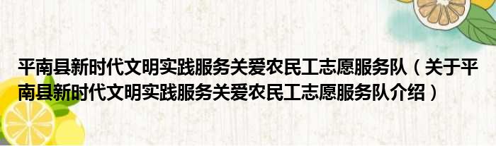 平南縣新時代文明實踐服務關愛農民工志愿服務隊(關于平南縣新時代文明實踐服務關愛農民工志愿服務隊介紹)