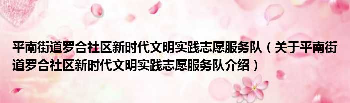 平南街道羅合社區新時代文明實踐志愿服務隊(關于平南街道羅合社區新時代文明實踐志愿服務隊介紹)