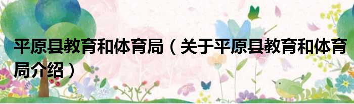 平原縣教育和體育局(關于平原縣教育和體育局介紹)