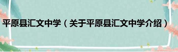 平原縣匯文中學(關于平原縣匯文中學介紹)