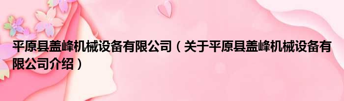 平原縣蓋峰機械設備有限公司(關于平原縣蓋峰機械設備有限公司介紹)