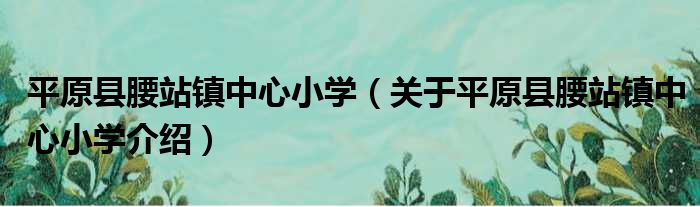 平原縣腰站鎮中心小學(關于平原縣腰站鎮中心小學介紹)