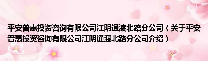 關于平安普惠投資咨詢有限公司江陰通渡北路分公司到此分享完畢,希望能幫助到您。