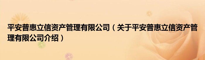 平安普惠立信資產管理有限公司(關于平安普惠立信資產管理有限公司介紹)