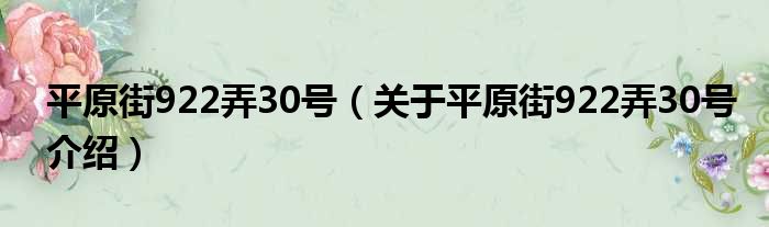 平原街922弄30號(關于平原街922弄30號介紹)