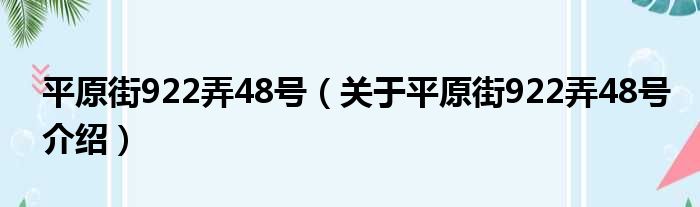 關于平原街922弄48號到此分享完畢,希望能幫助到您。