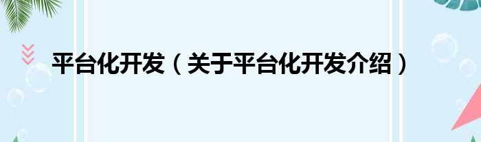平臺化開發(關于平臺化開發介紹)