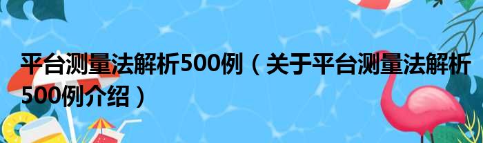 平臺測量法解析500例(關于平臺測量法解析500例介紹)