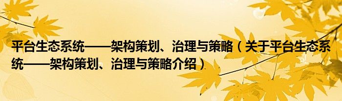 關于平臺生態系統——架構策劃、治理與策略到此分享完畢,希望能幫助到您。