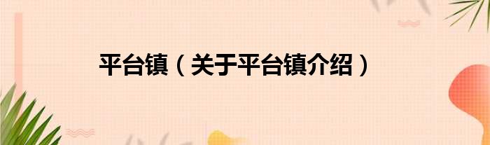 大家好,笑笑來為大家解答以上的問題。平臺鎮,關于平臺鎮介紹這個很多人還不知道,現在讓我們一起來看看吧!