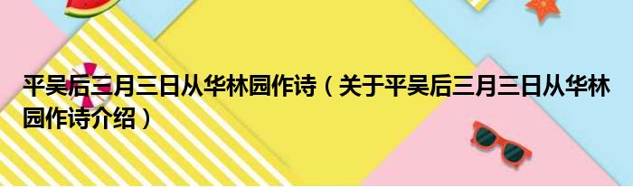 平吳后三月三日從華林園作詩(關于平吳后三月三日從華林園作詩介紹)