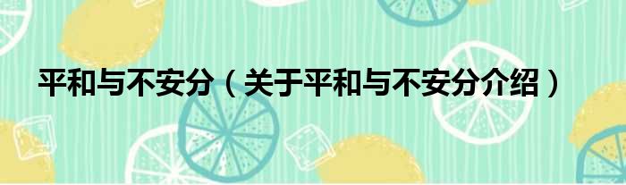 導讀 大家好,笑笑來為大家解答以上的問題。平和與不安分,關于平和與不安分介紹這個很多人還不知道,現在讓我們一起來看看吧!1、 《平和與不