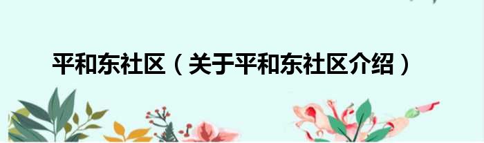 平和東社區(關于平和東社區介紹)