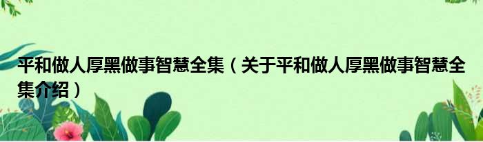 關于平和做人厚黑做事智慧全集到此分享完畢,希望能幫助到您。