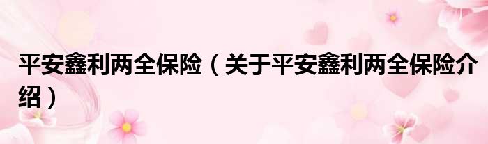 平安鑫利兩全保險(關于平安鑫利兩全保險介紹)