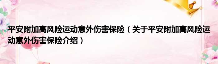 平安附加高風險運動意外傷害保險(關于平安附加高風險運動意外傷害保險介紹)