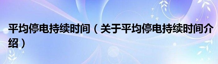 關于平均停電持續時間到此分享完畢,希望能幫助到您。