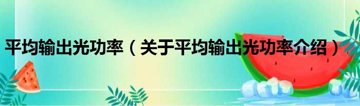 大家好,笑笑來為大家解答以上的問題。平均輸出光功率,關于平均輸出光功率介紹這個很多人還不知道,現在讓我們一起來看看吧!