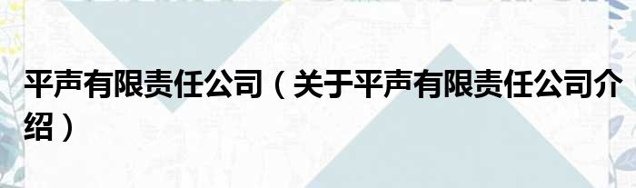 平聲有限責任公司(關于平聲有限責任公司介紹)