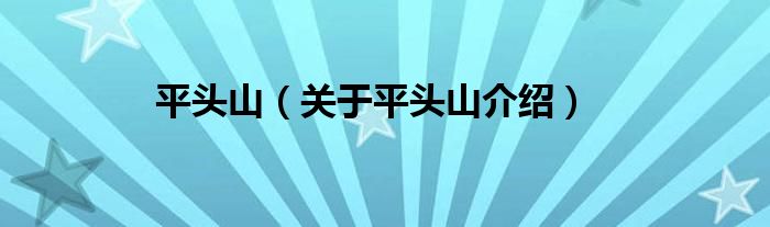 1、 平頭山是云南省地名,該地名來源于地形地貌。