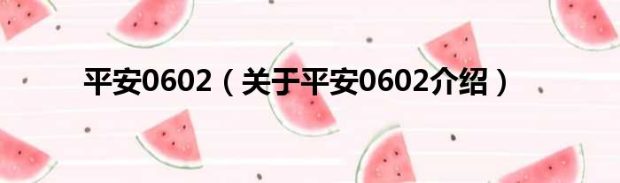 大家好,笑笑來為大家解答以上的問題。平安0602,關于平安0602介紹這個很多人還不知道,現在讓我們一起來看看吧!